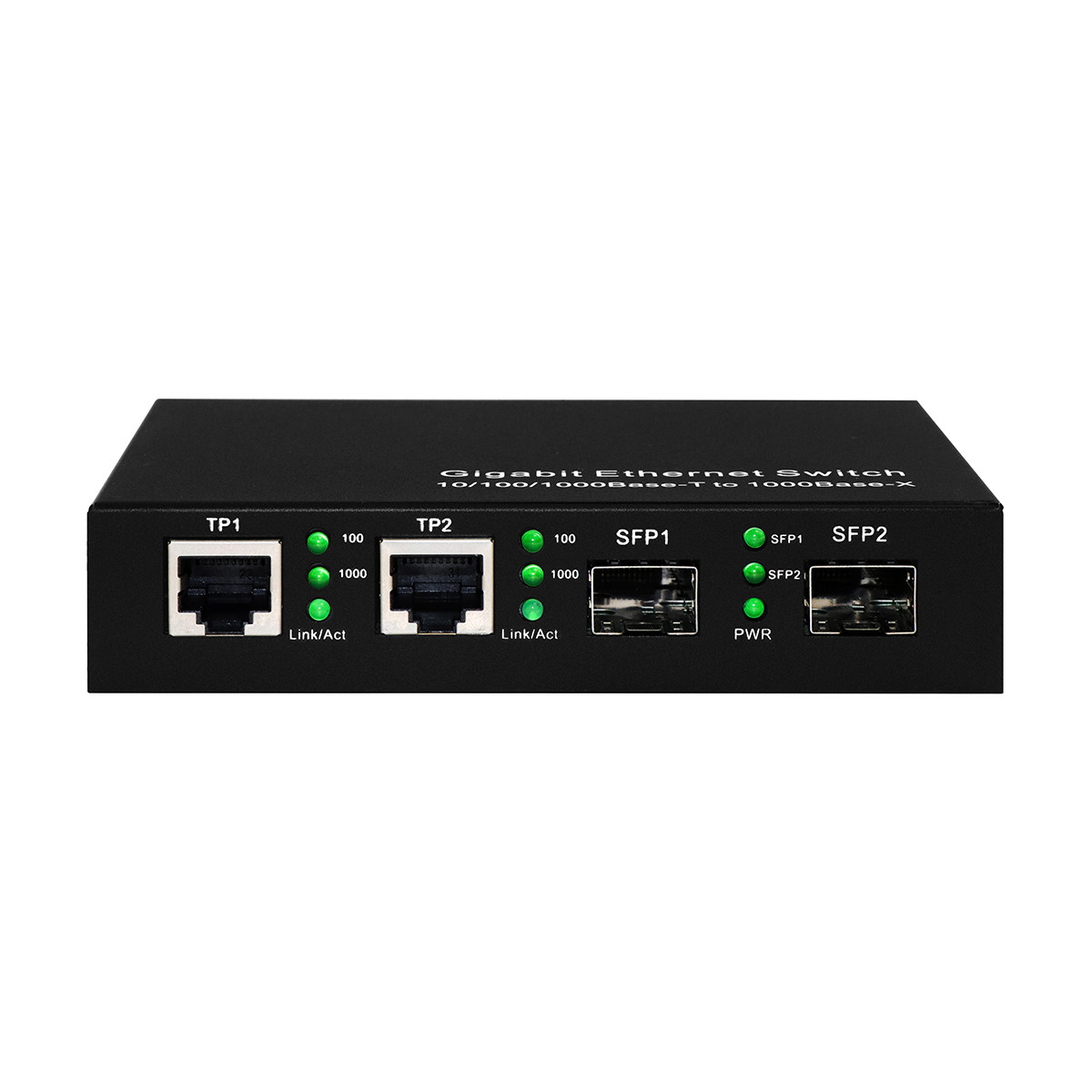 Indicadores LED: TP 100, TP 1000, TP Link/Act, SFP1, SFP2, PWR