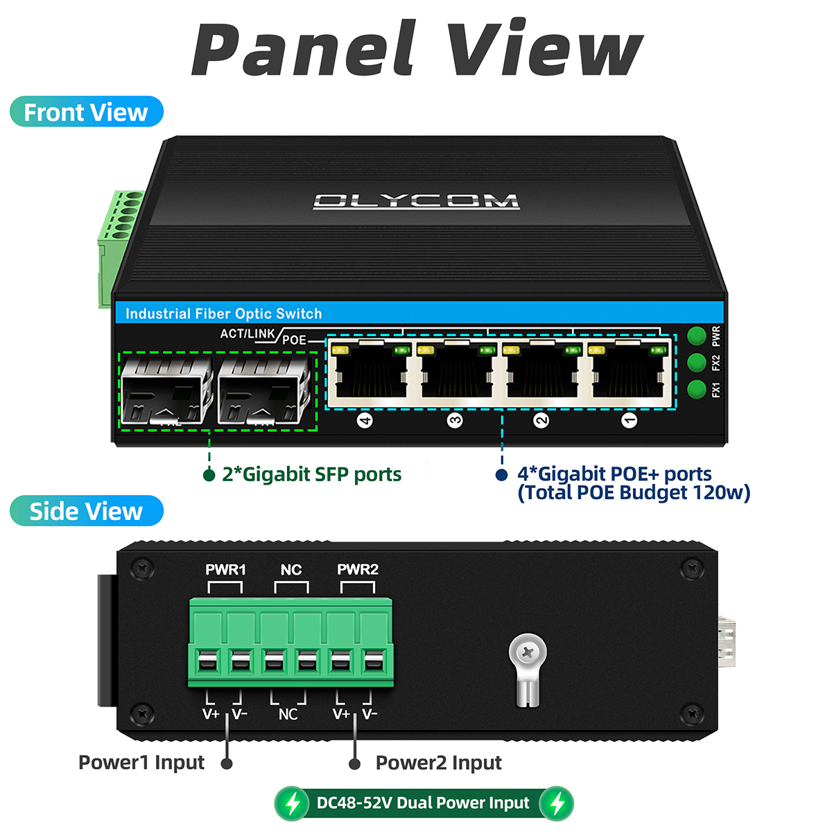 Interruptor Gigabit POE com interruptor etéreo não gerenciado 120W poe af/at DC48V Entrada de energia